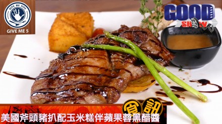美國斧頭豬扒配玉米糕伴蘋果蓉黑醋醬